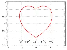 ![]() (x2 + y2 − 1)3 − x2y3 = 0 |