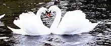 - Пара лебедів, підпливають назустріч один одному, в момент торкання утворюють форму серця. Лебеді є символом кохання, любові, вірності та відданості, оскільки сформована пара залишається разом на все життя[1], що в світі тварин спостерігається вкрай рідко[2].