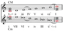 - має місце симетрія мажорного та мінорного ладів;