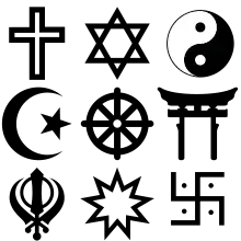 Припускається, що тенденція людей бачити мету в симетрії, є однією з причин, чому симетрія часто є невід'ємною частиною символів світових релігій. Деякі з багатьох прикладів, зображені на малюнку праворуч.