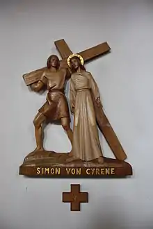 Цій події присвячена п'ята стація Хресної дороги: Симон з Киринеї допомагає Ісусові нести хрест. Ніяких інших відомостей про Симона Святе Письмо не містить. Припускають, що він належав до єврейської общини лівійського міста Кирена і прийшов до Єрусалиму на Великдень як і інші юдеї, що жили у діаспорі.