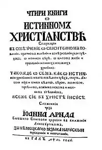 - Іоанн Арндт. Чотири книжки про істинне християнство. Галле, 1735.