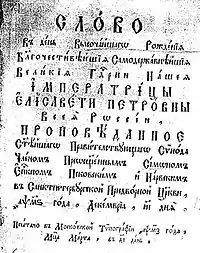- «Слово на день народження Єлизавети Петрівни» 18 грудня 1746 р. Москва, Синодальна друкарня.