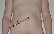 | Точка МакБурнея (1), в якій визначають наявність симптому Аарона | |