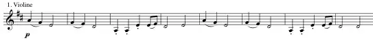 Основний матеріал викладено на alla breve. Головна партія виконується струнною групою: