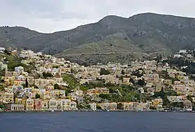 Практично все населення зосереджено в однойменному містечку на півночі острова, що виник біля середньовічної візантійської цитаделі. На острові велика кількість монастирів і каплиць (близько 200). Найбільш відомий з них — монастир Панормітіс, присвячений св. Архангелу Михаїлу, розташований на південному узбережжі острова.