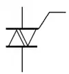 На відміну від тиристора, що має катод і анод, основні (силові) виводи симістора не називають катодом чи анодом, оскільки в силу симетричної структури симістора вони є тим і іншим одночасно. Однак за способом включення відносно керуючого електрода основні виводи симістора розрізняються, причому має місце їх аналогія з катодом і анодом тиристора. На наведеному рисунку верхній за схемою вивід симістора називається умовним катодом, нижній — умовним анодом, вивід праворуч — керуючим електродом.