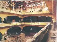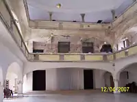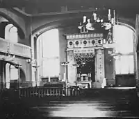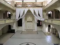 Інтер'єр невисокої головної молитовної зали накритий склепінням. З чотирьох боків її оточують залізобетонні дворівневі неороманські галереї для жінок, збудовані 1905 року замість старих дерев'яних, котрі опирались на 12 колонах і пристінних пілястрах. На галереї ведуть зовнішні сходові клітки збудовані 1872 року при південній і західній стінах.