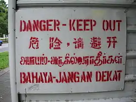 Сингліш — креольська мова на базі англійської, якою розмовляють в Сінгапурі.[1]