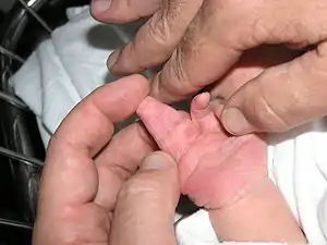 ![]() Повна синдактилія пальців руки Повна синдактилія пальців руки | |