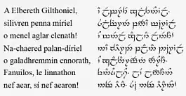 ![]() Приклад тексту синдарином (запис тенгваром і транслітерація латиницею) | |
