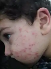 ![]() Висип на щоках дитини при синдромі Джанотті—Крості Висип на щоках дитини при синдромі Джанотті—Крості | |
