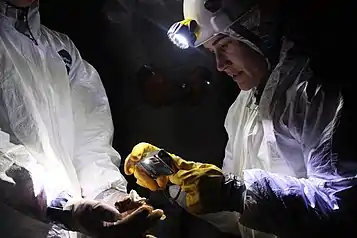 - Warnecke, Lisa; Turner, James M.; Bollinger, Trent K.; Lorch, Jeffrey M.; Misra, Vikram; Cryan, Paul M.; Wibbelt, Gudrun; Blehert, David S. та ін. (1 травня 2012). Inoculation of bats with European Geomyces destructans supports the novel pathogen hypothesis for the origin of white-nose syndrome. Proceedings of the National Academy of Sciences 109 (18). с. 6999–7003. PMC PMC3344949. PMID 22493237. doi:10.1073/pnas.1200374109. Процитовано 5 травня 2018.