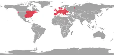 - White-nose syndrome map | White-Nose Syndrome. www.whitenosesyndrome.org (англ.). Процитовано 5 травня 2018.