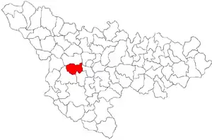 Комуна розташована на відстані[3] 417 км на захід від Бухареста, 12 км на південний захід від Тімішоари.