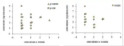 Попри це, у низці випадків синоніми, сформовані шляхом запозичень, інколи стають у нагоді для позначення різних родів або видів, що у часи формування словників не розрізнялися. Такими прикладами є вживання («розведення» у різні роди) назв «вовчок» і «соня» («соня» була «замінником» української назви «вовчок»), нориця і полівка («полівку» у багатьох працях періоду мовних ревізій взагалі писали на російський взір як «польовка»[13]), «вивірка» і «білка», «сарна» і «косуля» та ін. Торкнулася ця проблема і назв чужорідних видів, що відомі загалу, зокрема назви «їжатець», яку викорінювали і пробували замістити назвою «дикообраз».