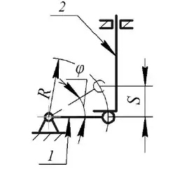 Синусний механізм, зображений на рисунку 1, призначено для перетворення поступального руху в обертовий. Він складається із штовхача 2, що рухається поступально, важеля 1 зі сферичним наконечником (знаходиться у коливальному русі). Ведучою ланкою може бути як штовхач, так і важіль.