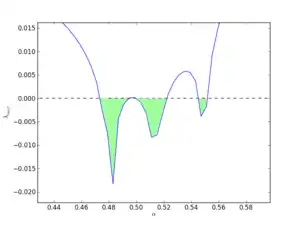 - Розрахувати максимальну експоненту Ляпунова () невеликої лінійної системи (2), для потрібного діапазону параметру ;