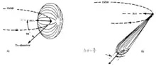 у випадку, якщо спостерігач знаходиться в площині обертання частинки.