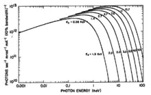 Для прикладу, електрон з енергією 2 ГеВ випромінює в конусі з кутом при вершині 50 кутових секунд[6].