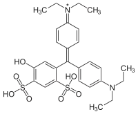CCN(CC)C1=CC=C(C=C1)C(=C2C=CC(=[N+](CC)CC)C=C2)C3=CC(=C(C=C3S(=O)(=O)[O-])S(=O)(=O)[O-])O.CCN(CC)C1=CC=C(C=C1)C(=C2C=CC(=[N+](CC)CC)C=C2)C3=CC(=C(C=C3S(=O)(=O)[O-])S(=O)(=O)[O-])O.[Ca+2][1] |