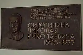 ![]() Меморіальна дошка Миколі Сиротиніну у будівлі Інституту фізіології | |