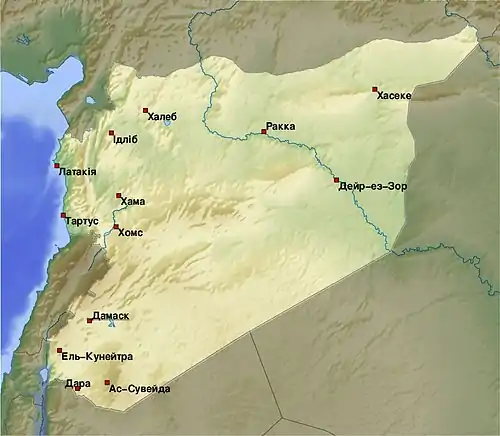 | Столиця | Дамаск 33°30′ пн. ш. 36°18′ сх. д. | ||||