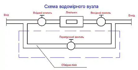 Знаходиться в підвалі будинку або спеціальному приміщенні та складається з двох вентильних засувок(на вході і виході) та розташованого після вводу лічильника (водоміра), який вимірює кількість спожитої води.