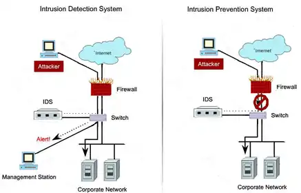 Системи IPS можна розглядати як розширення систем виявлення вторгнень (IDS), так як завдання відстеження атак залишається однаковою. Однак, вони відрізняються в тому, що IPS повинна відслідковувати активність в реальному часі і швидко реалізовувати дії щодо запобігання атак.