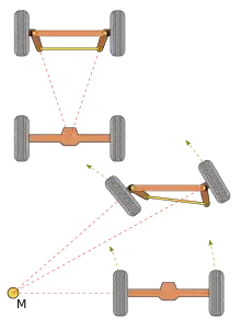 Залежно від розташування керованих коліс розрізняють поворот колесами передньої осі, колесами задньої осі та колесами двох осей.