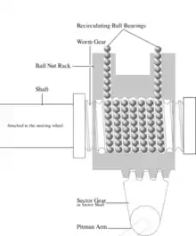 Гвинтово-гайковий механізм схожий на черв'ячний, але замість черв'яка використовується гвинт, що входить у гайку. На гайці нарізана зубчаста рейка, до останньої приєднується зубчастий сектор, на валу якого розташована кермова сошка. Зазор між гвинтом і внутрішньою поверхньою гайки заповнений циркулювальними кульками, які перекочуються по гвинтових канавках. Їхнє призначення аналогічне призначенню кульок у кульковальницях: зменшувати тертя.