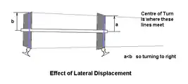 Пересування локомотивів здійснюється по рейках, які вже забезпечують потрібний поворот (на розгалуженнях вибір напрямку забезпечується стрілками), тому спеціальні кермувальні пристрої на них відсутні (колесо в кабіні, схоже на кермове, служить для керування контролером тяги). Необхідне для повороту диференціювання зовнішніх і внутрішніх коліс забезпечується їхнім характерним профілем у формі зрізаного конуса: при повороті внутрішні колеса котяться по рейці ділянкою меншого діаметру, отже, проходять при однаковому із зовнішніми колесами числом обертів (що неминуче при використовуванні колісної пари, в якої відсутній диференціал) менший шлях. Зміщення залізничного колеса від серединного положення до ділянки найбільшого чи найменшого діаметру становить близько 3 см.