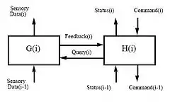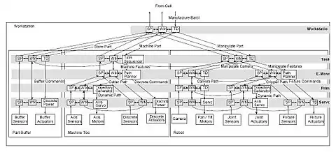 Наступне покоління, RCS-2, було розроблено Барбарою, Фіцджеральдом, Кентом і іншими для управління виробництвом в автоматизованому виробничому дослідному центрі NIST (AMRF) на початку 1980-х рр.[9][10][11] основний будівельний блок RCS-2 показаний на малюнку.
