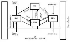 RCS-3 був розроблений для проекту декількох автономних підводних транспортних засобів (MAUV) NBS / DARPA[13] і був адаптований для стандартної моделі NASA / NBS-архітектури системи управління телероботам (NASREM), розробленої для космічної станції Flight Telerobotic Servicer [14] Основний будівельний блок RCS-3 показаний на малюнку.