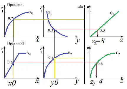 Ілюстрація алгоритму Сугено 0-порядку представлена на рисунку 9.