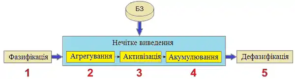 Основні етапи нечіткого виводу зображені на рисунку 1.