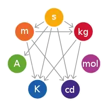 Основними одиницями системи SI є одиниця довжини — метр, одиниця маси — кілограм, одиниця часу — секунда, одиниця сили електричного струму — Ампер, одиниця термодинамічної температури — Кельвін, одиниця кількості речовини — моль, одиниця сили світла — кандела.