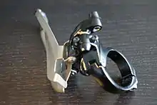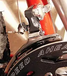 - Цей тип перемикачів не потребують кріплення на сідловій трубі, натомість кріпляться до рами за допомогою пластини, встановленої під диском збоку від чашки каретки і гвинтом прикручуються до рами. Зазвичай такі перемикачі встановлюють на гірські велосипеди, у яких компоненти задньої підвіски не залишають достатньо простору для нормального розташування хомутів перемикача.