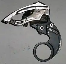 - Один із методів, яким користується компанія Shimano, це використовувати натяг ланцюга, щоб повертати рамку. Цей метод має ту перевагу, що відпрацьовує із більшістю наборів зірочок, якщо підібрано ланцюг необхідної довжини. Недоліком є те, що швидке перемикання від малих до більших зірочок одразу на кілька позицій, може призвести до ударів рамки із зірочкою до того, як ланцюг переміститься на велику зірочку і рамки обернеться до необхідного положення.