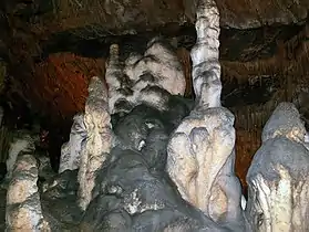 Унікальна за своїми кольорами — зелений, коричневий і білий. Зустрічаються сталактити, сталагміти, сталагнати, геліктити та дендрити.