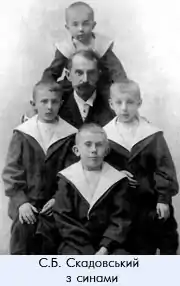 З Марією Олександрівною С. Б. Скадовський мав чотирьох синів та чотирьох доньок. З дітей пережили революційні часи ХХ ст. лише два сини — Сергій і Олександр.