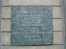 ![]() Пам'ятна дошка на честь заснування групи Скамандр на варшавській вулиці Нови Свят | |