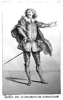 З 1661 року Мольєр ділив сцену в Пале-Рояль із трупою італійської комедії, де в ролі Скарамуша виступав актор Тіберіо Фйоріллі[4]. Фйоріллі позбавив маску усіх військових ознак і навіть не носив шпагу (саме такий образ Скарамуша зберігся до наших днів), але він відрізнявся невичерпною вигадкою, гарно володів акторською технікою, його гра рясніла акторськими технічними трюками, і Мольєр багато чому в нього навчився.