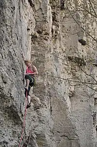 Лазіння без використання будь-якого спорядження для подолання маршруту, окрім скельних туфель, магнезії та, іноді, наколінників. Страховка відбувається за допомогою заздалегідь пробитих шлямбурів, у які встібуються відтяжки і мотузка.