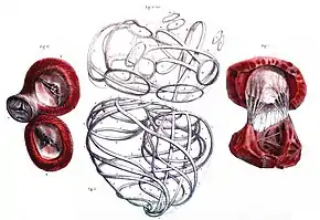Кожне кільце своїм краєм шлуночка приєднується до деяких м'язових волокон шлуночків; їх протилежний край представлений трьома глибокими напівкруглими виїмками, до яких міцно прикріплена середня оболонка артерії.