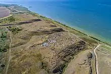 Розміщене на високому корінчастому березі. Зі сходу та заходу обмежене глибокими давніми балками[2]. Скелька є типовим пам'ятником римських традицій фортифікації мала дві лінії оборони з кам'яними стінами і чотирикутною вежею, до якої в давнину примикало вартове приміщення. При дослідженні вежі археологами знайдені 3 кам'яних ядра, уламки 2-х копій і бронзові наконечники стріл, сліди штурму тавро-скіфами в середині II століття[3].
