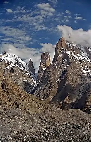 Згідно з деякими джерелами, найвищою скелею у світі (1340 м) є східний схил Великого Транґо в гірській системі Каракорум на півночі Пакистану (лише з урахуванням майже вертикальної частини, разом з прилеглим пологим схилом висота становить понад 1600 м).