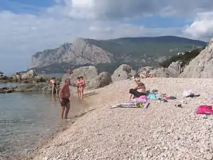 ![]() Вид з пляжу на мисі Ласпі на Скелі Куш-Кая. | ||||