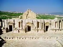 Стародавній театр в м. Ґераш, Йорданії. Споруда ззаду є скена.