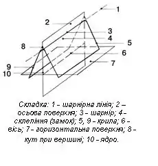 - о с ь о в у п о в е р х н ю – поверхня, яка ділить кут при вершині складки навпіл;